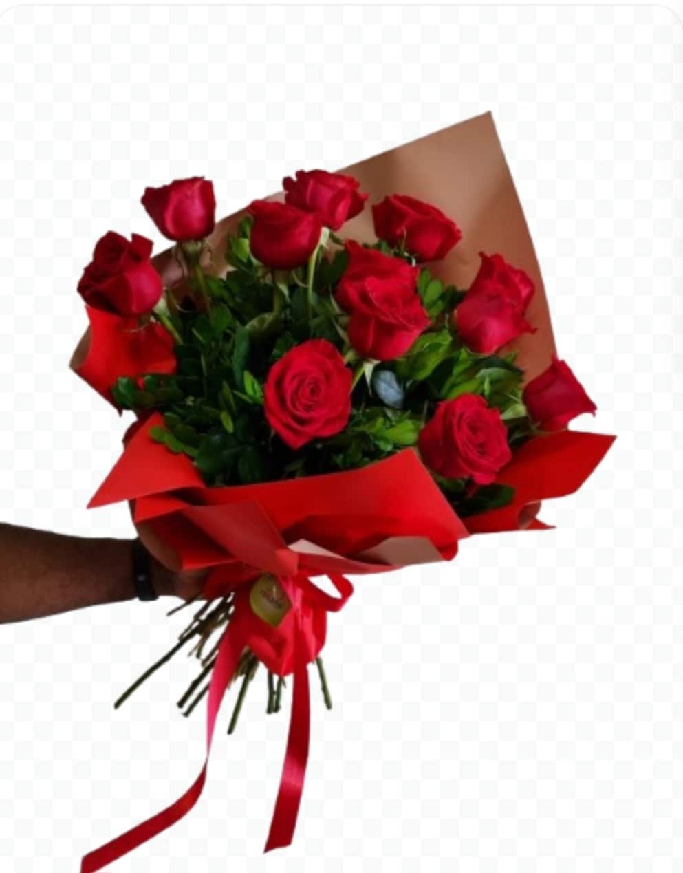 Início Arranjos A Buquê com 12 rosas, papel especial