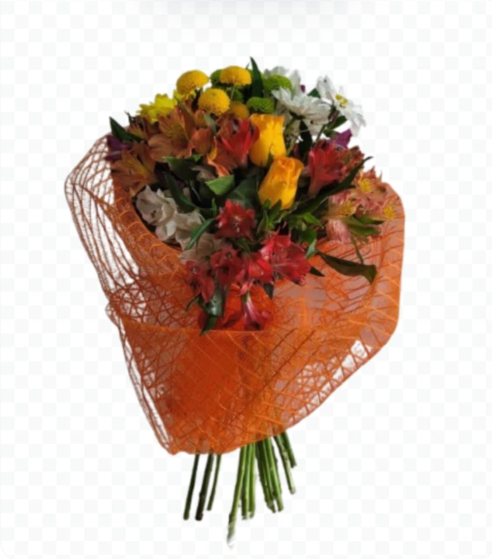 Buquê Frida com 14 alstroemérias, 02 rosas + 04 flores do campo